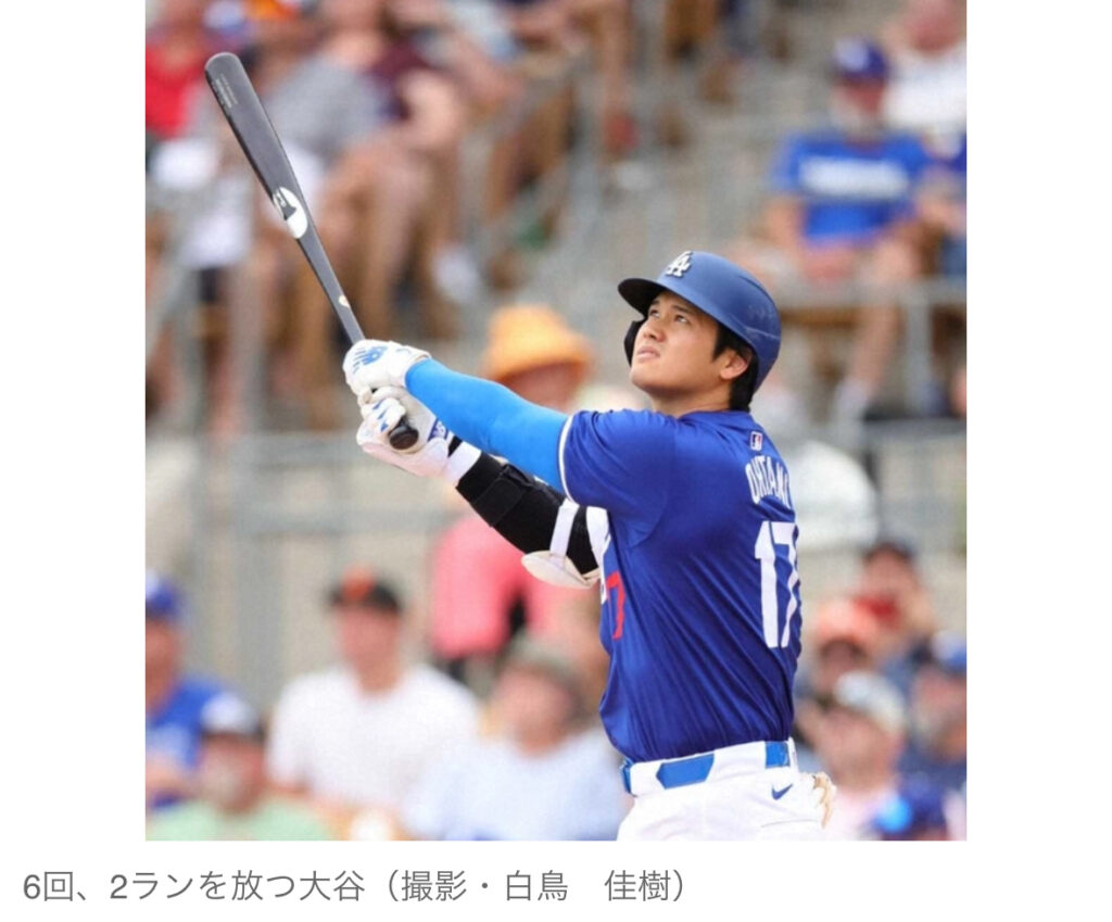 【MLB】大谷翔平 ジャイアンツ戦で20打席ぶりアーチ 同地区ライバル球団からOP戦2度目の3安打