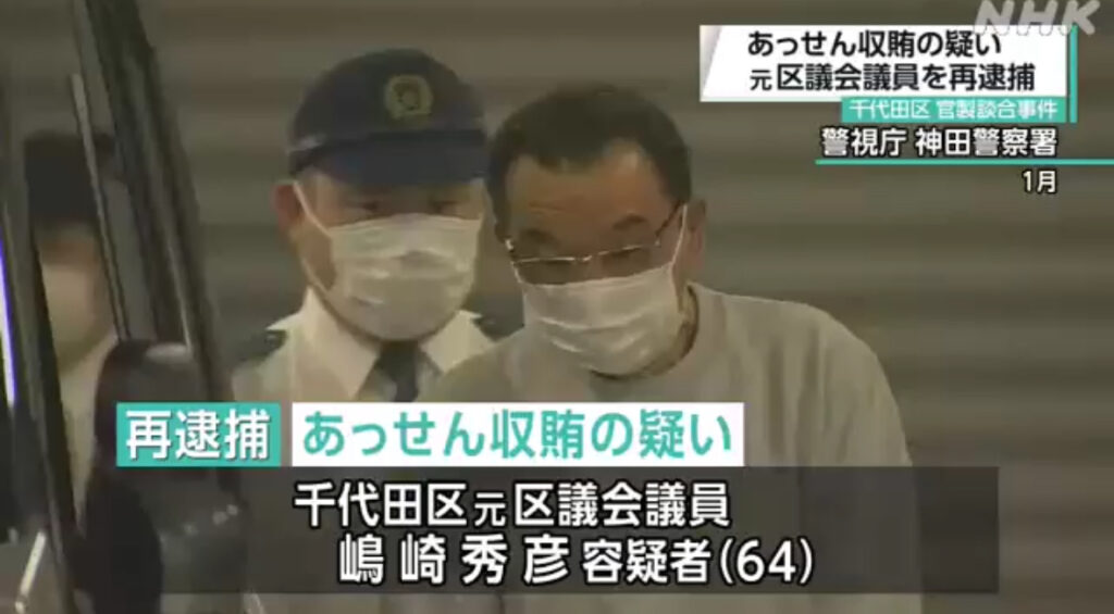 1: PARADISE ★ 2024/03/10(日) 10:28:04.10 ID:z/zOGdfj9 東京・千代田区が発注した工事の入札をめぐる官製談合事件で、元区議会議員が入札情報を漏らした見返りに業者から商品券などを受け取っていたとして、あっせん収賄の疑いで再逮捕されました。再逮... -