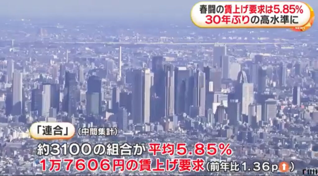 【春闘】賃上げ要求は平均5.85%・1万7606円 連合「物価を上回る賃上げ」を 30年ぶりの高水準