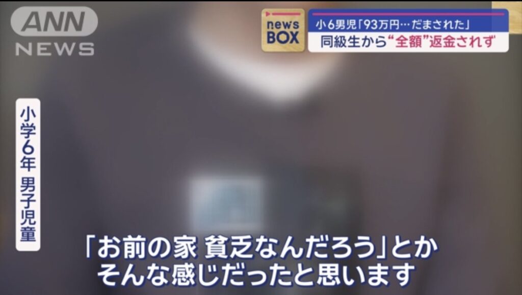 【小6男児「93万円だまされた」】同級生からいまだに70万近く返金されず
