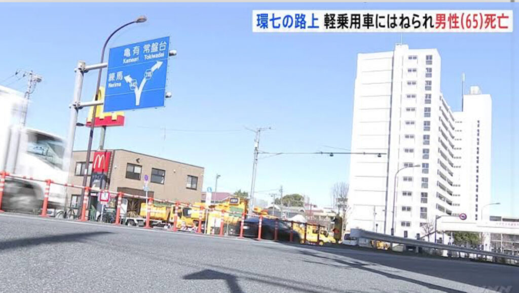 1: ◆Gap/News.k おっさん友の会 ★ 2024/03/03(日) 15:05:01.68 ID:rIyJBzl99 3日未明、東京・中野区で、65歳の男性が軽乗用車にはねられ死亡しました。 午前0時50分ごろ、中野区丸山の環状7号線で、「歩行者と軽乗用車の事故です」と近くにいた男性から110... -
