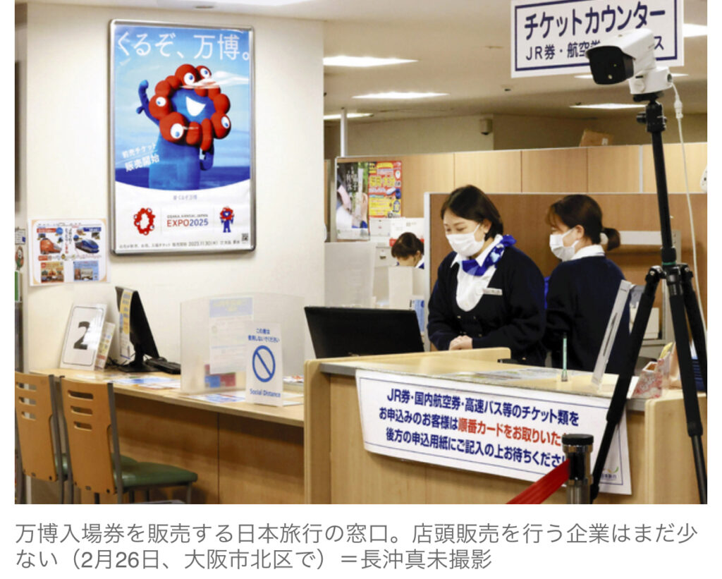 1: おっさん友の会 ★ 2024/03/03(日) 12:27:01.91 ID:IqLw/Wox9 2025年大阪・関西万博の前売り入場券の販売開始から3か月が経過した。これまでの販売枚数は約65万枚で、前売り目標1400万枚の4・6%。半分の700万枚は、経済界主導で企業に販売するめどがほ... -