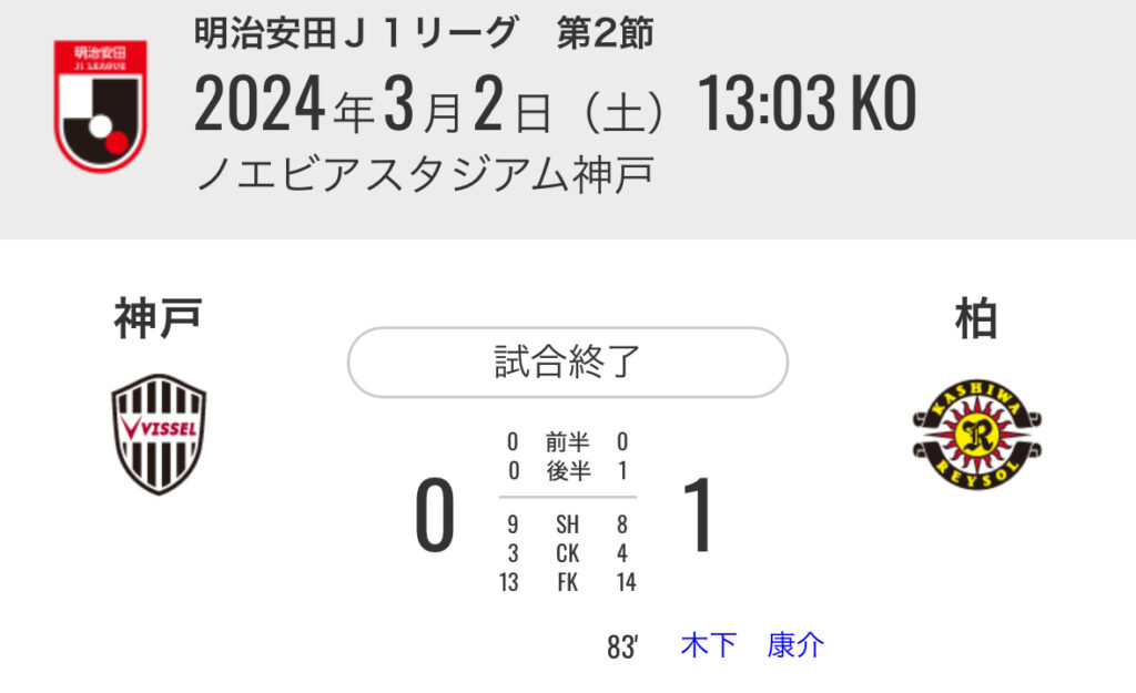 【サッカー】J1第2節昼 神戸×柏