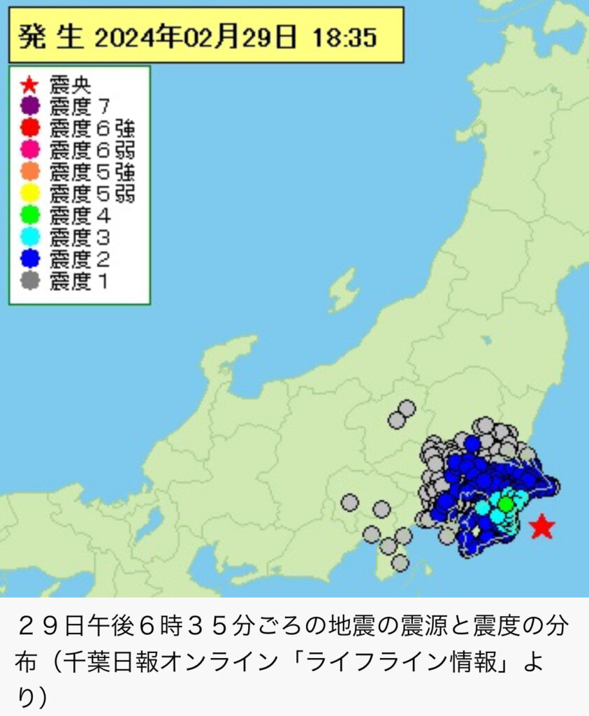 【地震】千葉県で地震相次ぐ 東方沖が震源 2月27日から29日にかけて10回以上、最大震度4 気象庁注意呼び掛け