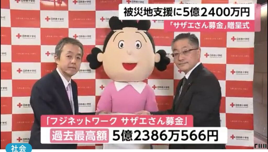 【能登地震】「フジネットワークサザエさん募金」に過去最高の5億2386万566円 日本赤十字社に贈呈