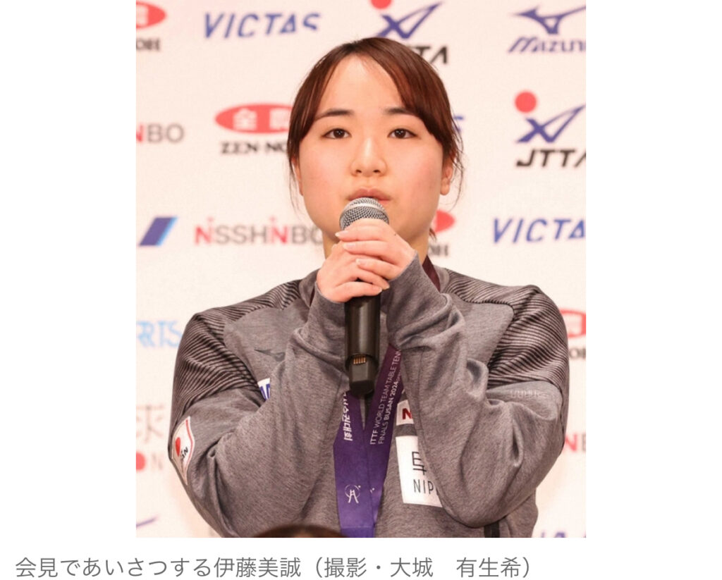 【卓球】伊藤美誠 パリ補欠は辞退へ「将来を背負っていく選手が経験すべき」世界選手権では“監督”ぶり話題も