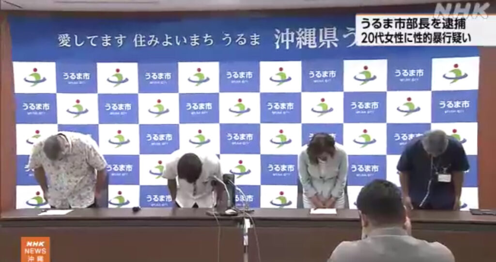 1: 少考さん ★ 2025/09/19(金) 20:38:02.78 ID:K2x4RDof9 うるま市 部長逮捕で中村正人市長が臨時の記者会見で謝罪|NHK 沖縄県のニュース https://www3.nhk.or.jp/lnews/okinawa/20250919/5090032856.html 09月19日 18時14分 うるま市の52歳の部長が2... -