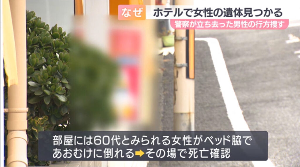 1: 首都圏の虎 ★ 2024/02/19(月) 20:43:01.22 ID:6YMVn/pY9 18日、大阪市生野区のホテルで女性の遺体が見つかり、警察はホテルから立ち去った男性の行方を捜しています。 18日正午ごろ、大阪市生野区新今里のホテルで「客が亡くなっている」と、従... -