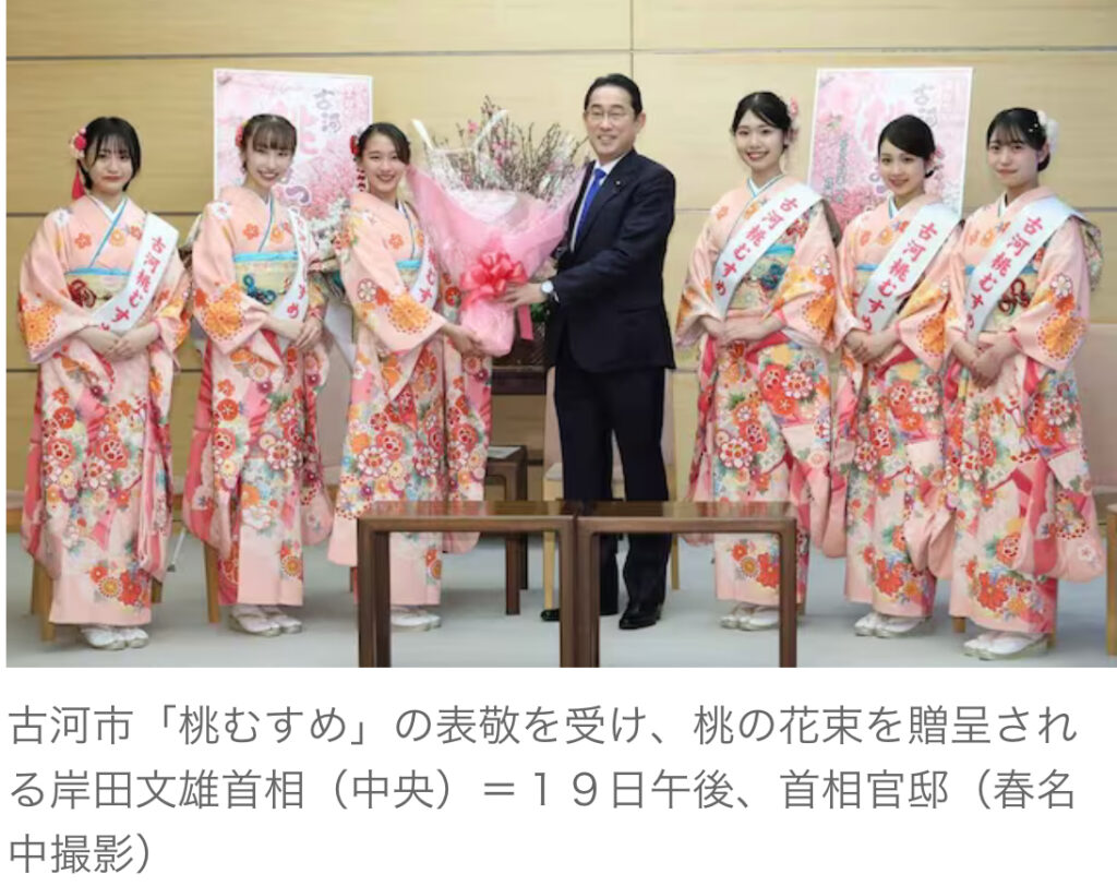 岸田首相、茨城県古河市「桃むすめ」から表敬訪問 「今年は桃も飾ろう」と笑顔