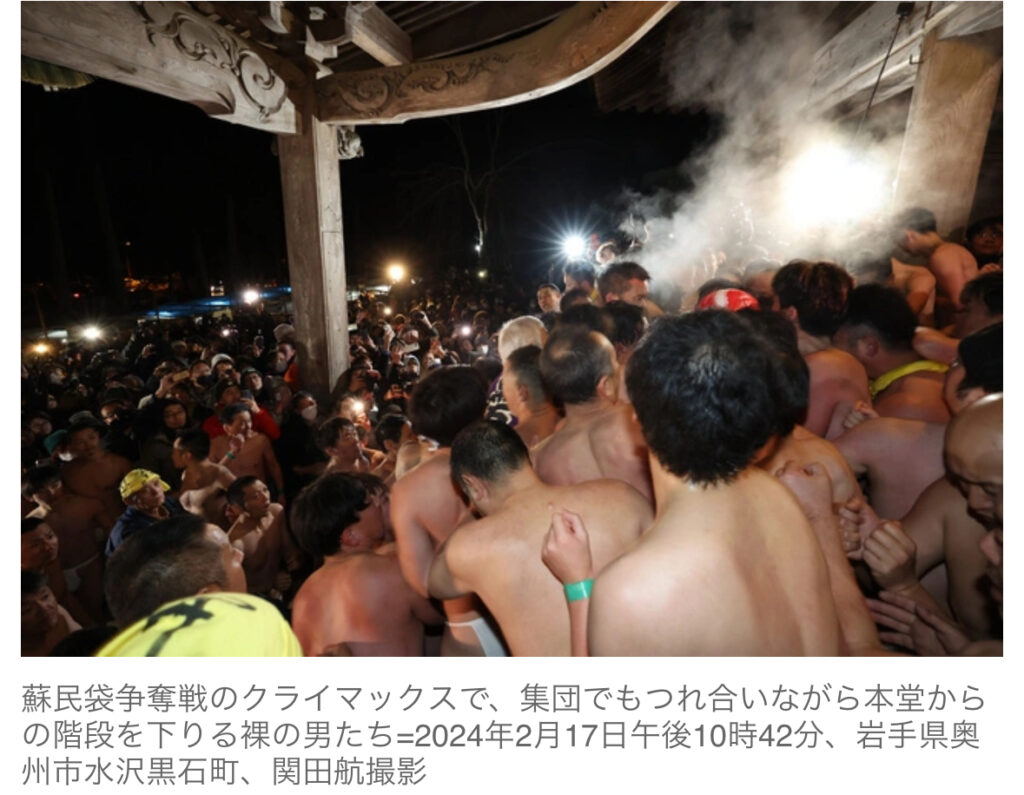 1: ずぅちゃん ★ 2024/02/19(月) 15:00:23.53 ID:??? TID:zuuchan 「ジャッソウ、ジョヤサ」。男たちの威勢の良い掛け声が山々に響いた。岩手県奥州市の黒石寺の伝統行事「黒石寺蘇民祭」が17日夜、千年以上の歴史に幕を下ろした。御利益があるとされる「...