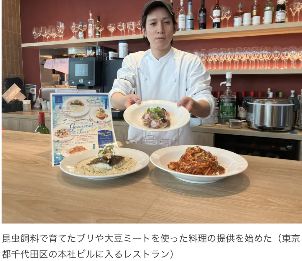 昆虫飼料で育てたブリ料理提供 丸紅 (ミールワーム)