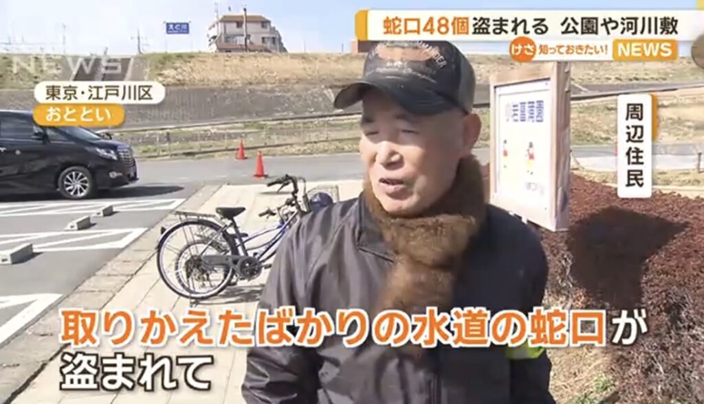 【東京】公園や河川敷で蛇口が計48個盗まれる 江戸川河川敷では盗まれて付け直すもまた被害に