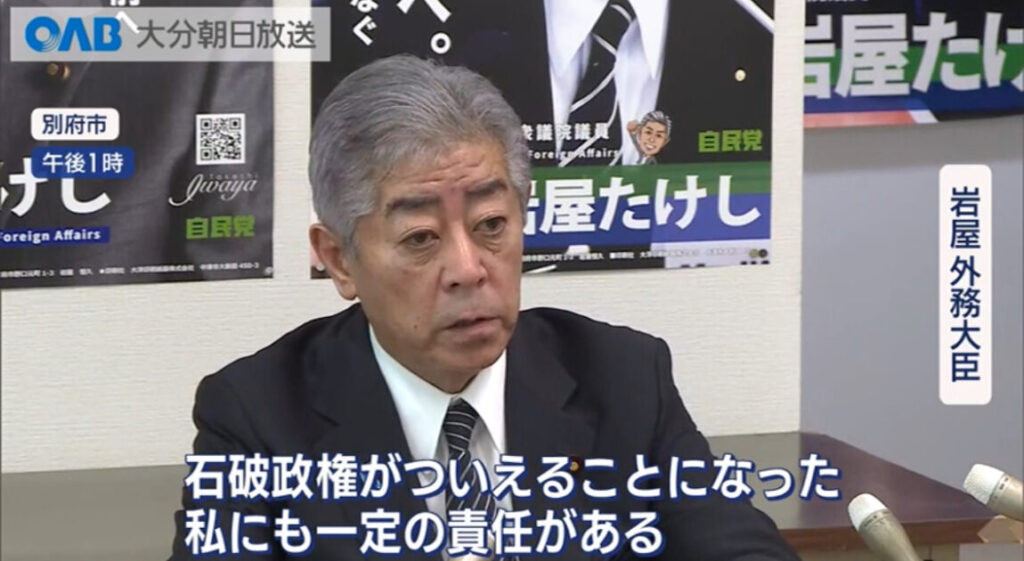 1: ぐれ ★ 2025/09/14(日) 21:18:57.07 ID:UTawxXS59 >>9/14(日) 18:01 OAB大分朝日放送自民党の総裁選について、岩屋外務大臣は「候補者の推薦人になる考えはない」と明らかにしました。 ■岩屋毅外務大臣 「閣僚として石破政権を支えてきた。その石... -