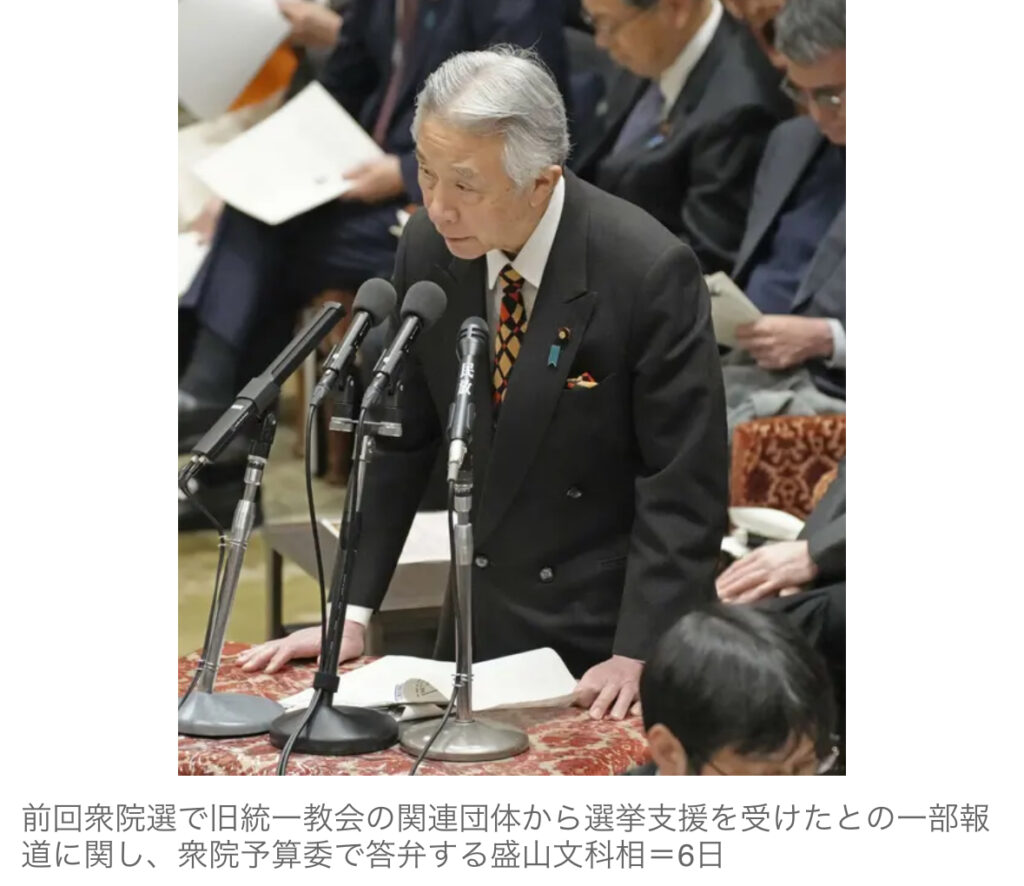 【宗教行政の所管庁トップ】盛山正仁文部科学相、旧統一教会系から推薦状 21年衆院選、事実上認める