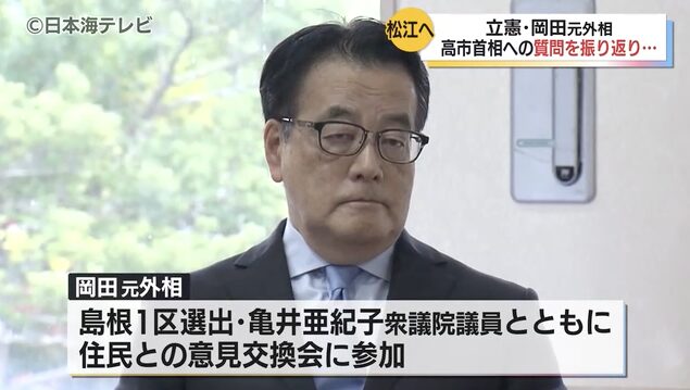 立憲・岡田元外相が島根県へ 高市首相の「『存立危機事態』になりうる」答弁振り返り「そんなことを政治家がいうのはやめるべきと質疑」
