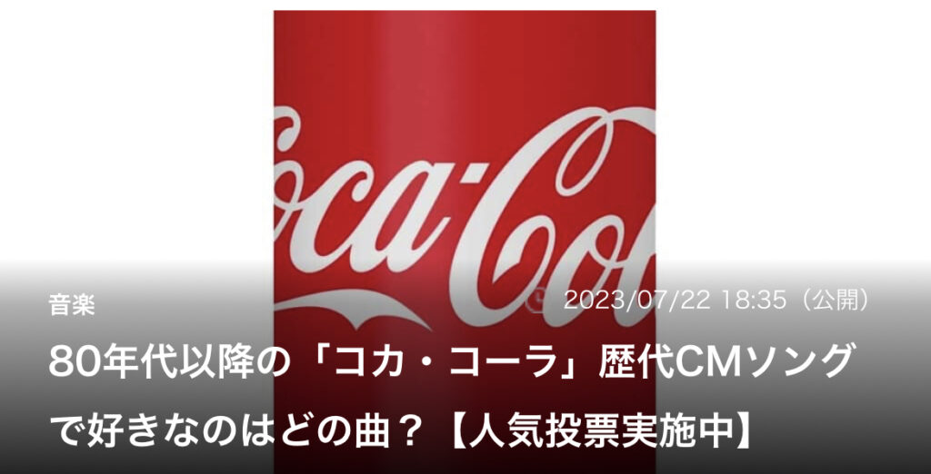 【音楽】80年代以降の『コカ・コーラ』歴代CMソングで好きな曲」ランキングTOP28 1位は「夏色のナンシー/早見優」
