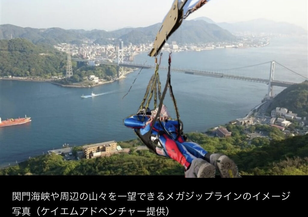 1: 蚤の市 ★ 2023/09/04(月) 08:32:15.45 ID:2lyMPXYW9 「観光の起爆剤に」関門海峡滑降1740㍍のアトラクション計画 北九州、下関両市が支援本格検討 山口県下関市の民間事業者が、関門海峡にワイヤロープを渡して滑り降りるアトラクション「メガジップラ... -