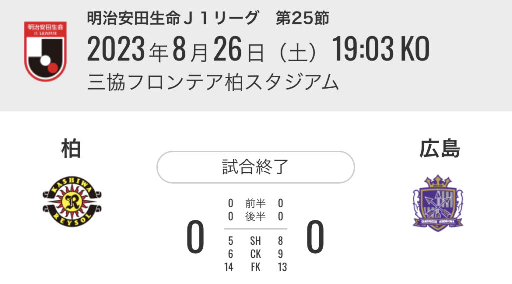 1: 久太郎 ★ 2023/08/26(土) 21:16:59.87 ID:pXlLWlYd9 柏 0-0 広島 [得点者] なし スタジアム:三協フロンテア柏スタジアム 入場者数:9,874人 https://www.jleague.jp/match/j1/2023/082603/live/#live/ FC東京 2-2 神戸 [得点者] 18'ディエゴ... -