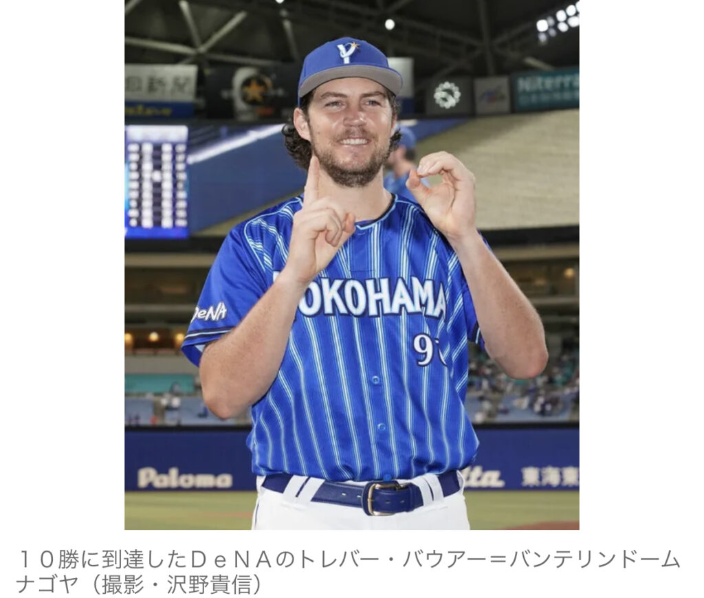 1: Ailuropoda melanoleuca ★ 2023/08/25(金) 22:12:21.89 ID:6laOSO8o9 8/25(金) 21:59配信 サンケイスポーツ (セ・リーグ、中日2-18DeNA、18回戦、DeNA13勝4敗1分、25日、バンテリンD)DeNAのトレバー・バウアー投手(32)...