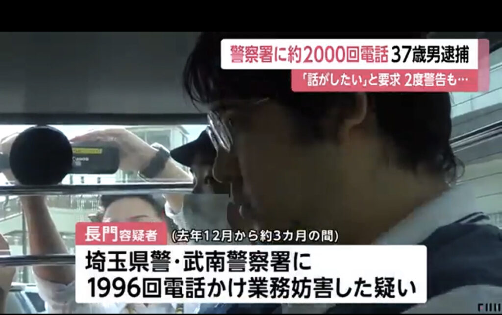 1: ぐれ ★ 2023/08/25(金) 06:34:24.45 ID:8bhsWojJ9 >>8/24(木) 11:01配信 FNNプライムオンライン(フジテレビ系) 警察署に約2,000回にわたり電話をかけ、業務を妨害した疑いで37歳の大学生の男が逮捕された。 大学生の長門和成容疑者(37)は、埼... -