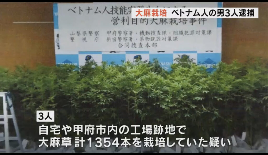 【山梨】グエン容疑者ら3人逮捕 自宅や工場跡地で大麻草1300本以上を栽培か