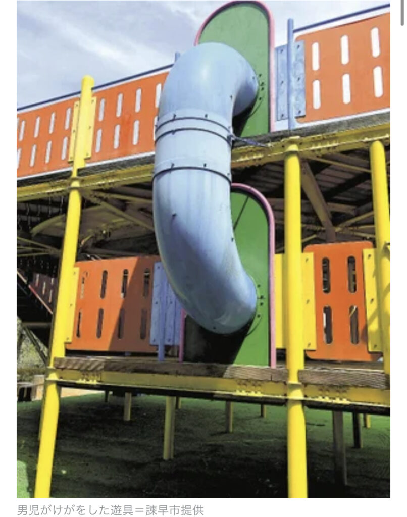 【長崎】公園遊具で飛び出た金具、男児が太もも7針縫うけが…目視点検で異常確認できず 諫早市