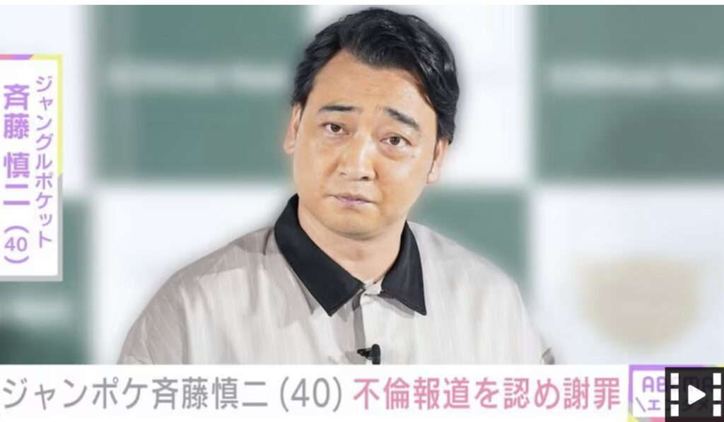 1: muffin ★ 2023/08/18(金) 11:23:00.76 ID:kM/oPOof9 https://times.abema.tv/articles/-/10091862 2023/08/17 23:05お笑いトリオ「ジャングルポケット」の斉藤慎二(40)がFRIDAYデジタルでの不倫報道を受け、謝罪した。 斉藤は17日、自身のSNSで「一部...