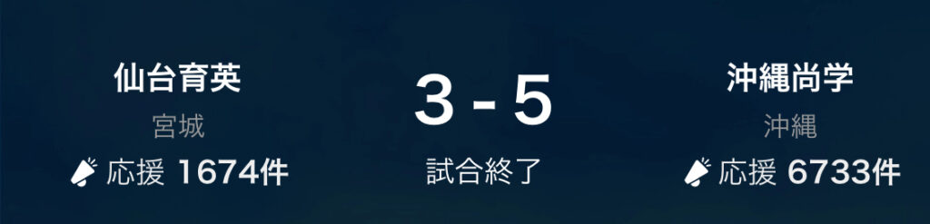 1: 鉄チーズ烏 ★ 2025/08/23(土) 12:01:44.36 ID:IQojTybC9 沖縄尚学 0 1 0 0 0 1 0 1 0|3 日大三高 1 0 0 0 0 0 0 0 0|1 【バッテリー】 (沖)新垣有、末吉 - 宜野座 (日)谷津、山口、近藤 - 竹中 【本塁打】 (沖... -