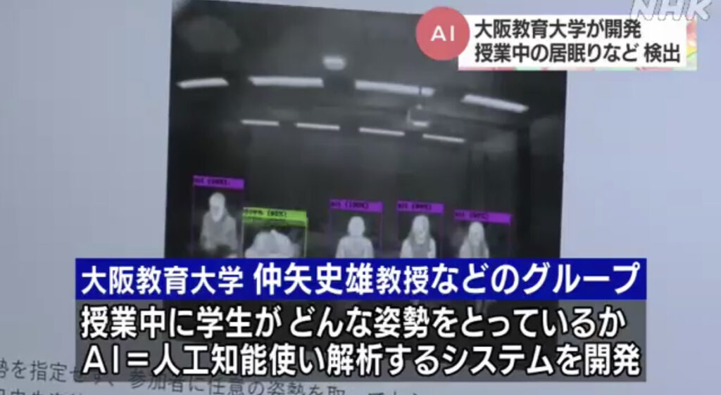 1: タロー ★ 2023/08/06(日) 11:23:45.75 ID:??? TID:taro 授業中に学生が居眠りしていないかなどをAI=人工知能を使って検出する システムを大阪教育大学が開発し、授業の内容の改善に役立つと注目されています。 これは、大阪教育大学の仲矢史雄教授な... -