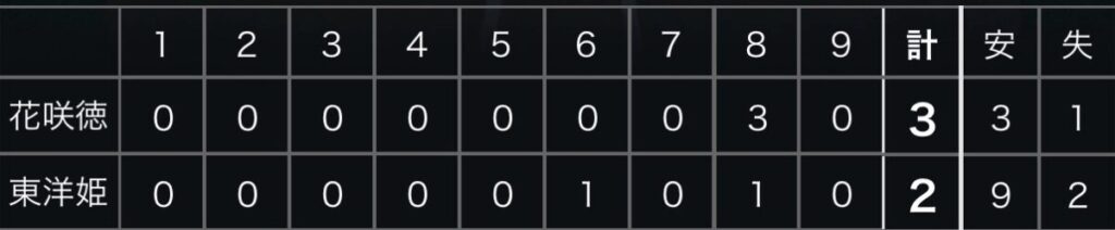 1: 鉄チーズ烏 ★ 2026/03/21(土) 10:56:29.45 ID:VcAzvgfe9 花咲徳栄. 0 0 0 0 0 0 0 3 0|3 東洋大姫路 0 0 0 0 0 1 0 1 0|2【バッテリー】 (花)黒川 - 佐伯 (東)下山、大野 - 峰松 【本塁打】 (花) (東) https... -