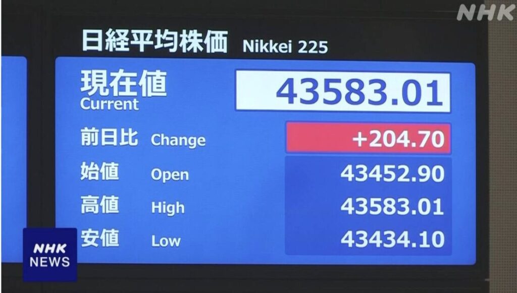 【日経平均株価】一時4万3500円超 取り引き時間中の史上最高値更新