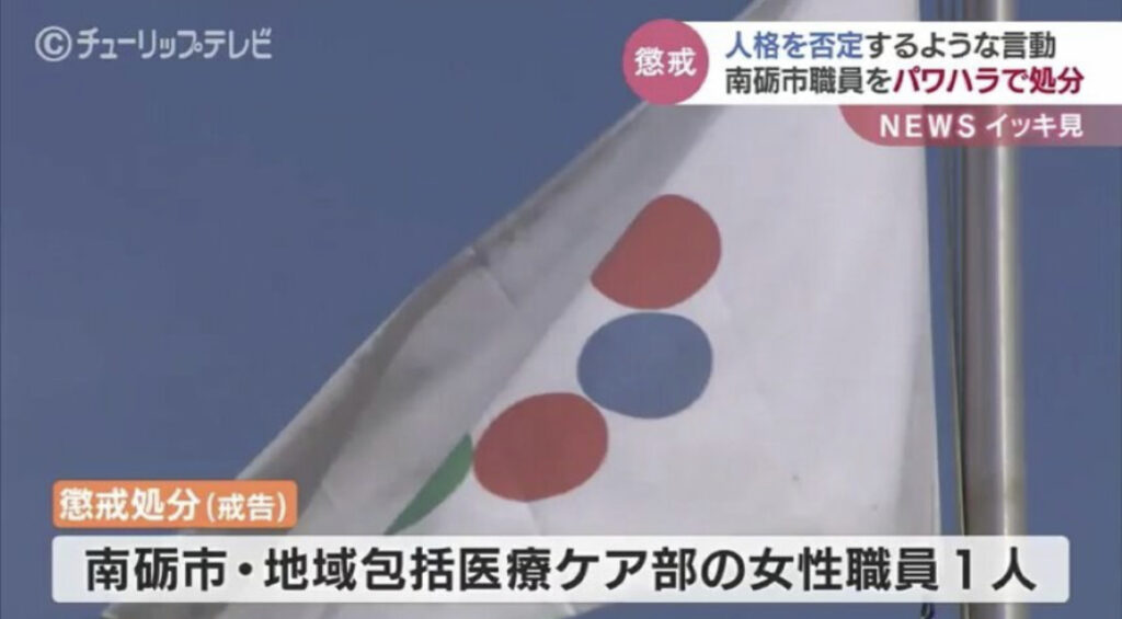 1: ぐれ ★ 2023/06/20(火) 10:45:08.98 ID:oqHaSPeg9 >>2023年6月19日(月) 19:00 チューリップテレビ 富山県南砺市の地域包括医療ケア部に所属する女性職員の言動がパワハラにあたるとして、南砺市は女性職員を19日付で懲戒処分の戒告にしたと発表し... -