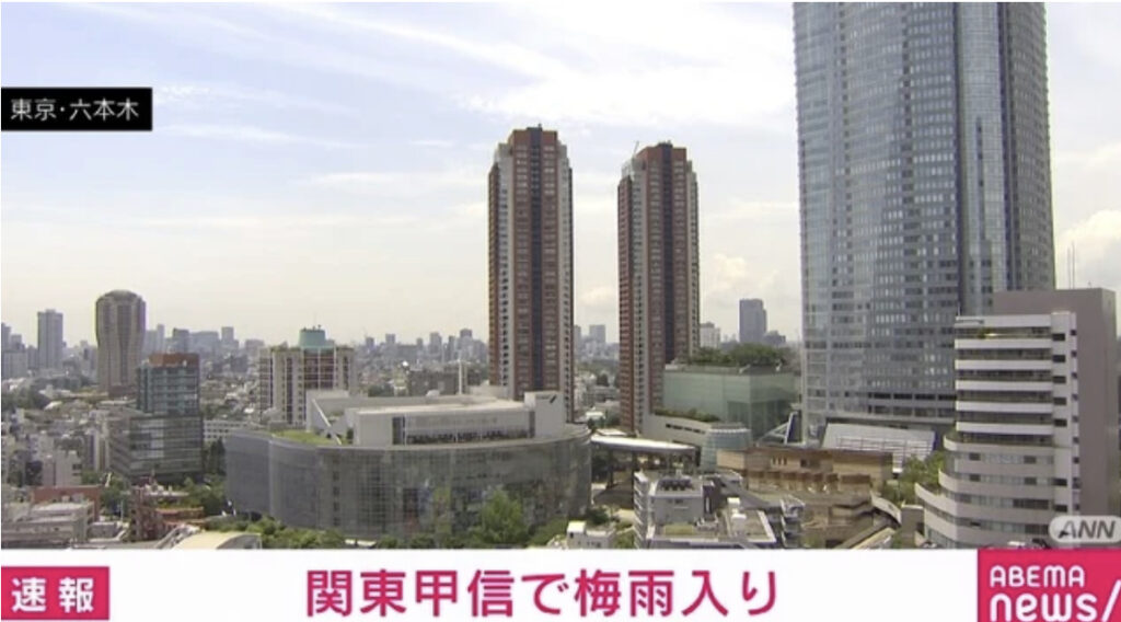【天気】関東甲信地方で梅雨入り 平年より1日遅く、去年より2日遅い 気象庁