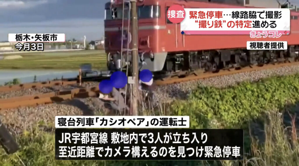 寝台列車「カシオペア」緊急停車、線路脇で撮影の3人特定へ…警察が捜査を始める