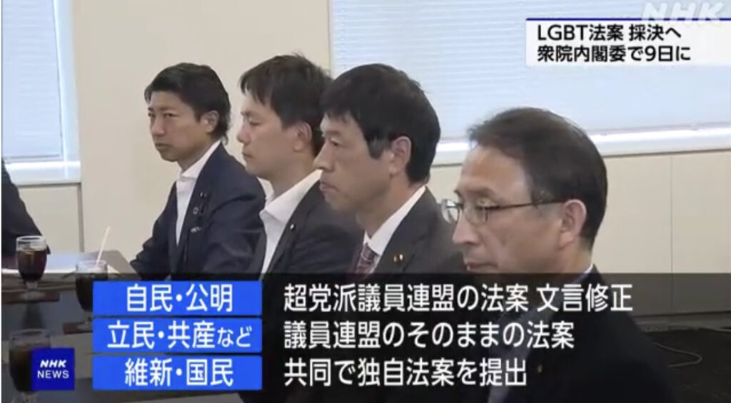 1: 風吹けば名無し 2023/06/07(水) 17:27:44.34 ID:UpreokkWp BE:659060378-2BP(7000) LGBTの人たちへの理解を増進するため、 与野党双方から提出された3つの法案について、 衆議院内閣委員会は9日に審議を行い、 その日のうちに採決することになりました... -