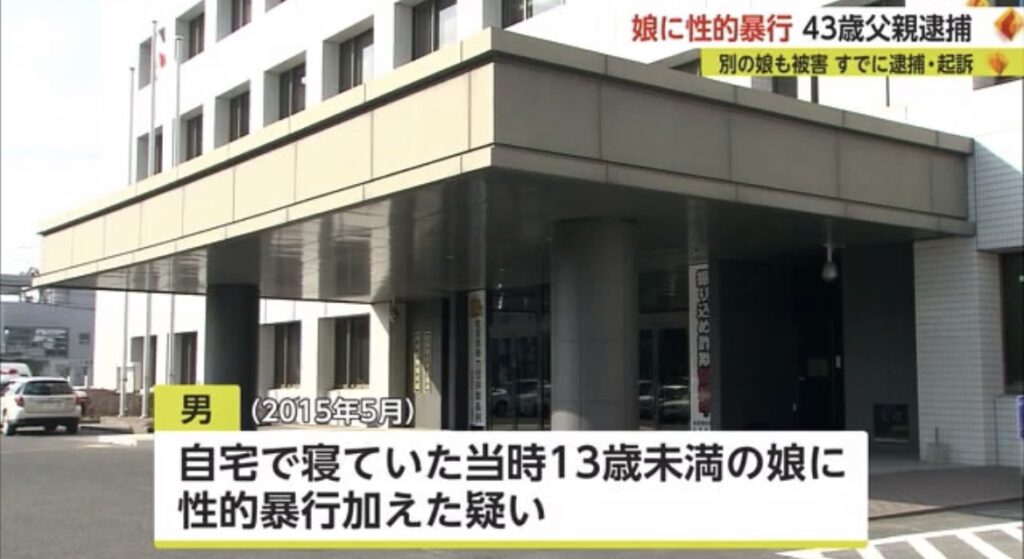 13歳未満の我が娘をレイプ。もうひとりの娘もレイプした大工(43)逮捕