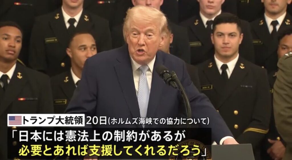 トランプ大統領 ホルムズ海峡での協力「日本には憲法上の制約があるが支援してくれる」