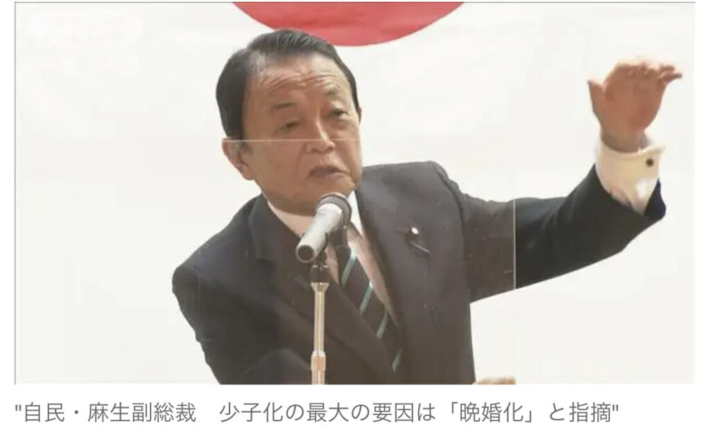 自民・麻生太郎副総裁 少子化の最大の要因は「晩婚化」 「出産する時の女性の年齢が高齢化」「中長期的には日本の最大の問題」